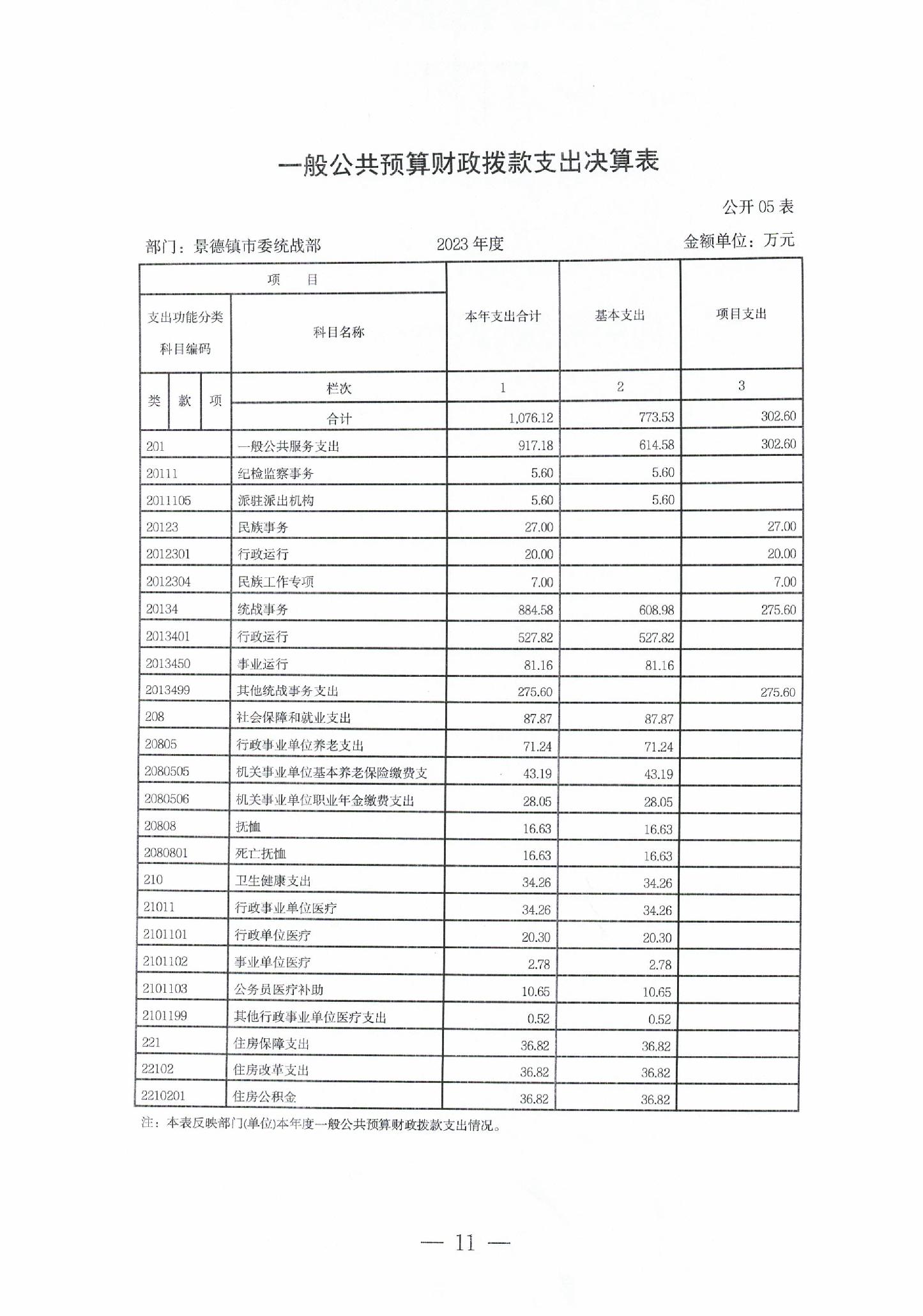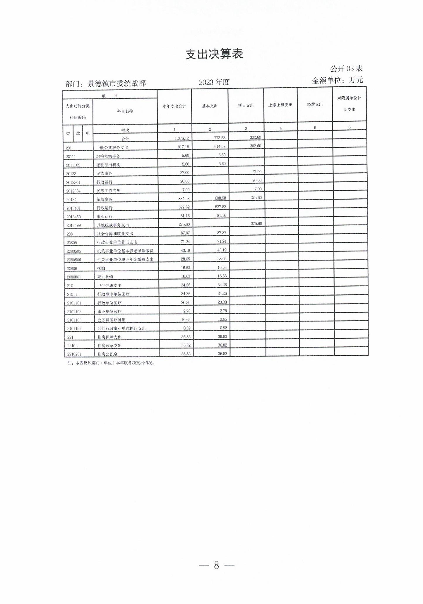 中国共产党景德镇市委员会统一战线工作部2023年部门决算