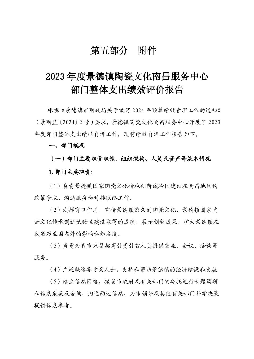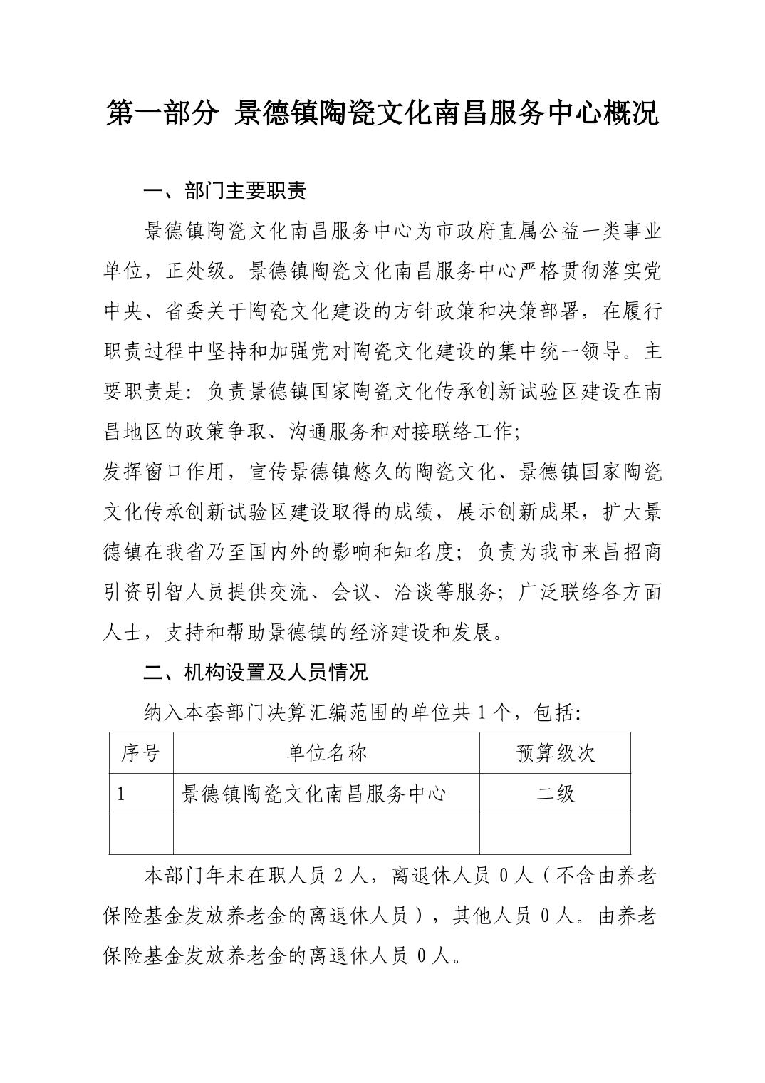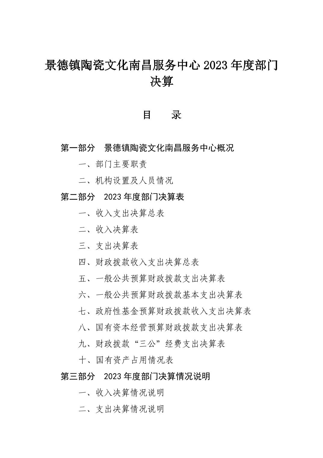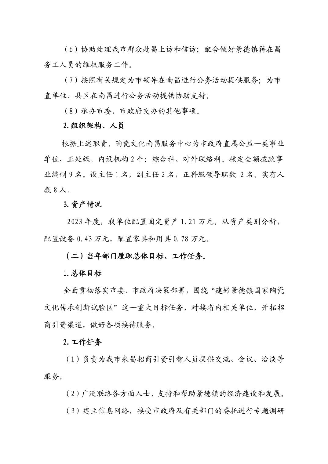 景德镇陶瓷文化南昌服务中心2023年部门决算公开