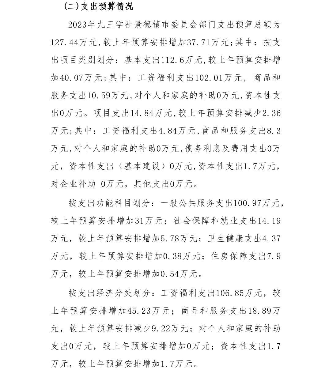 九三学社景德镇市委员会2023年部门预算编制说明