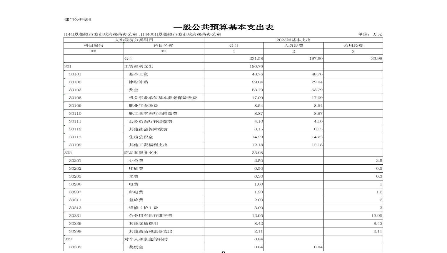 景德镇市委市政府接待办公室2023年部门预算公开