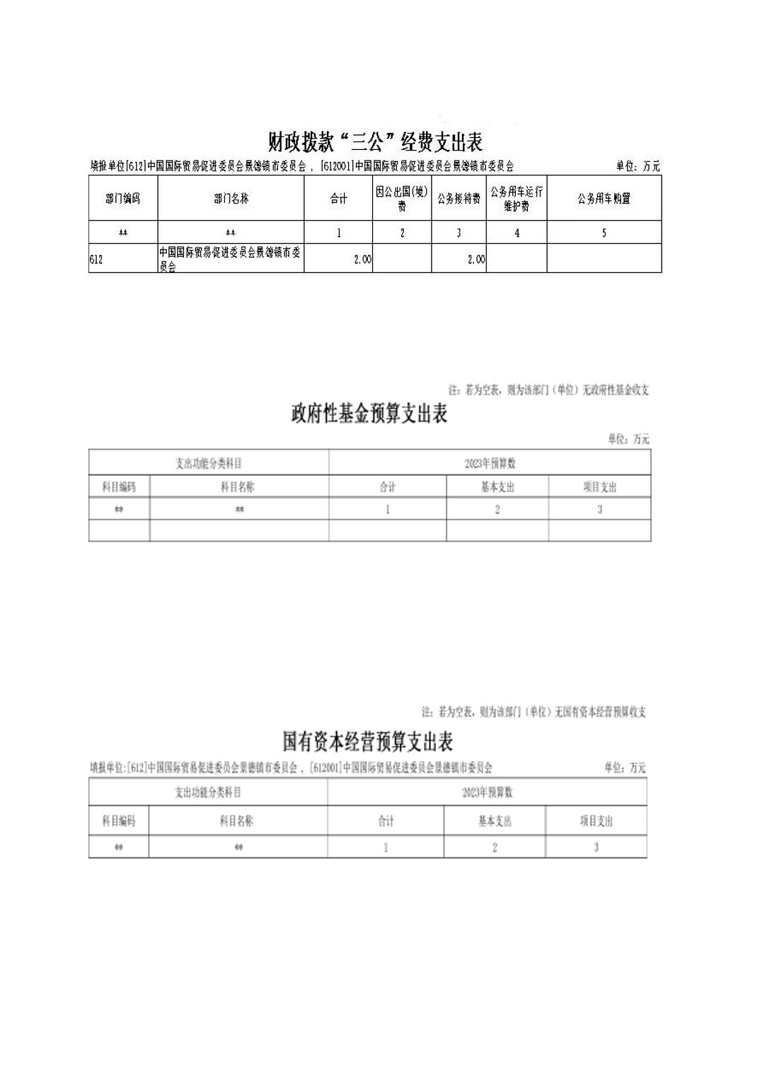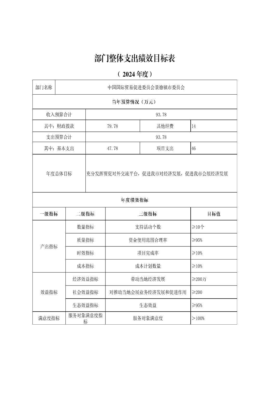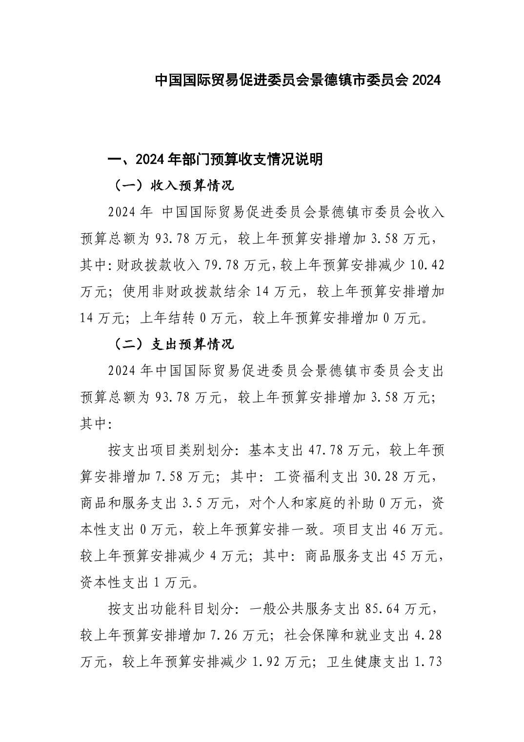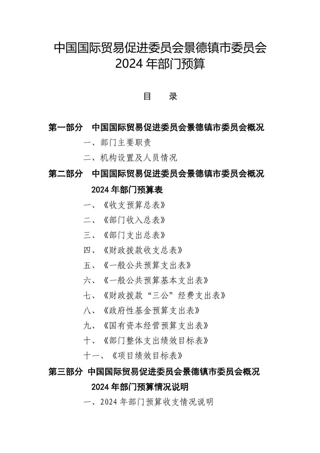 中国国际贸易促进委员会景德镇市委员会2024年部门预算