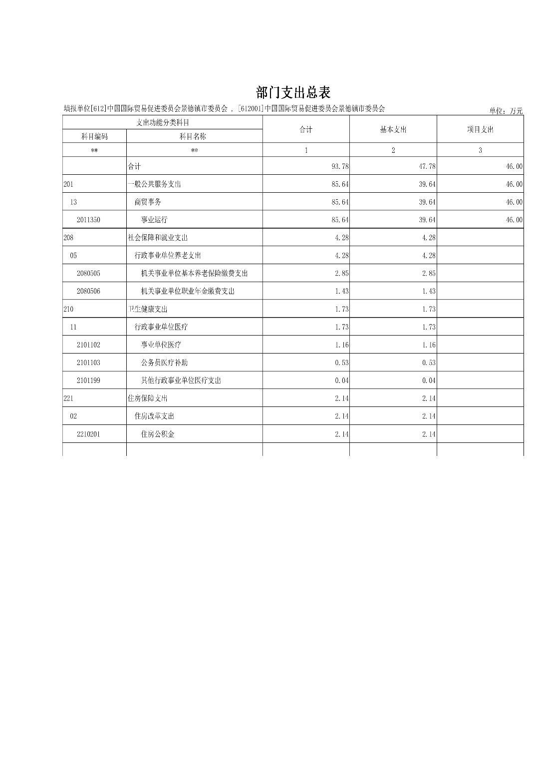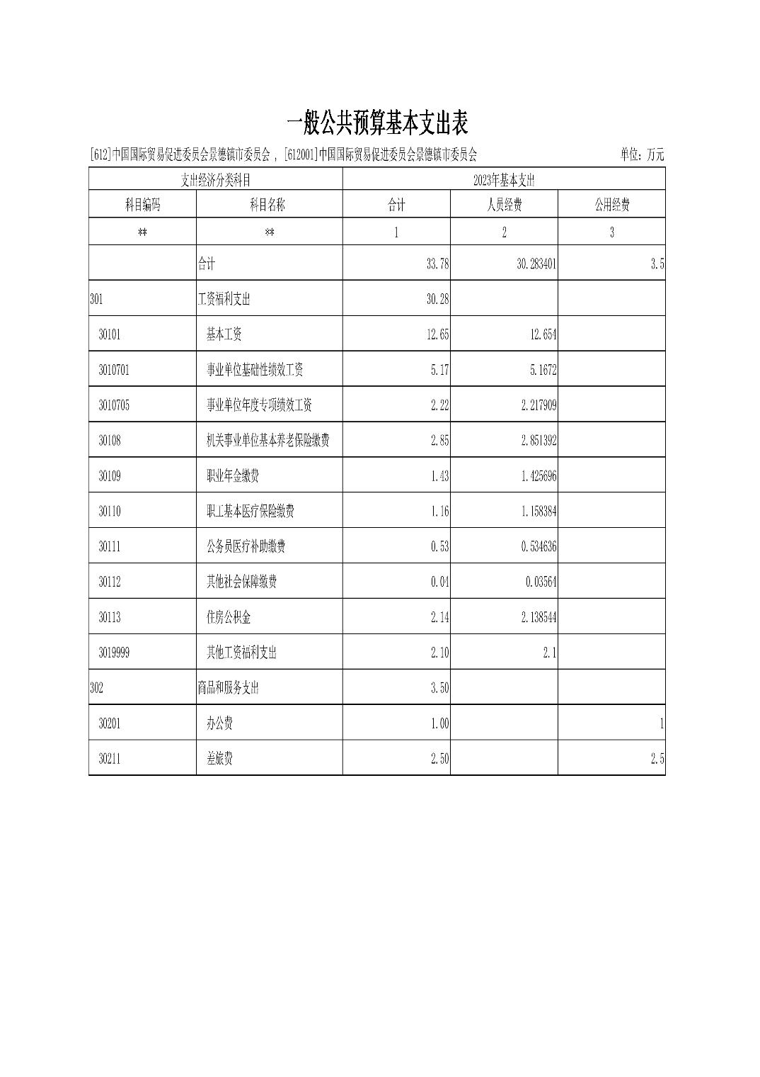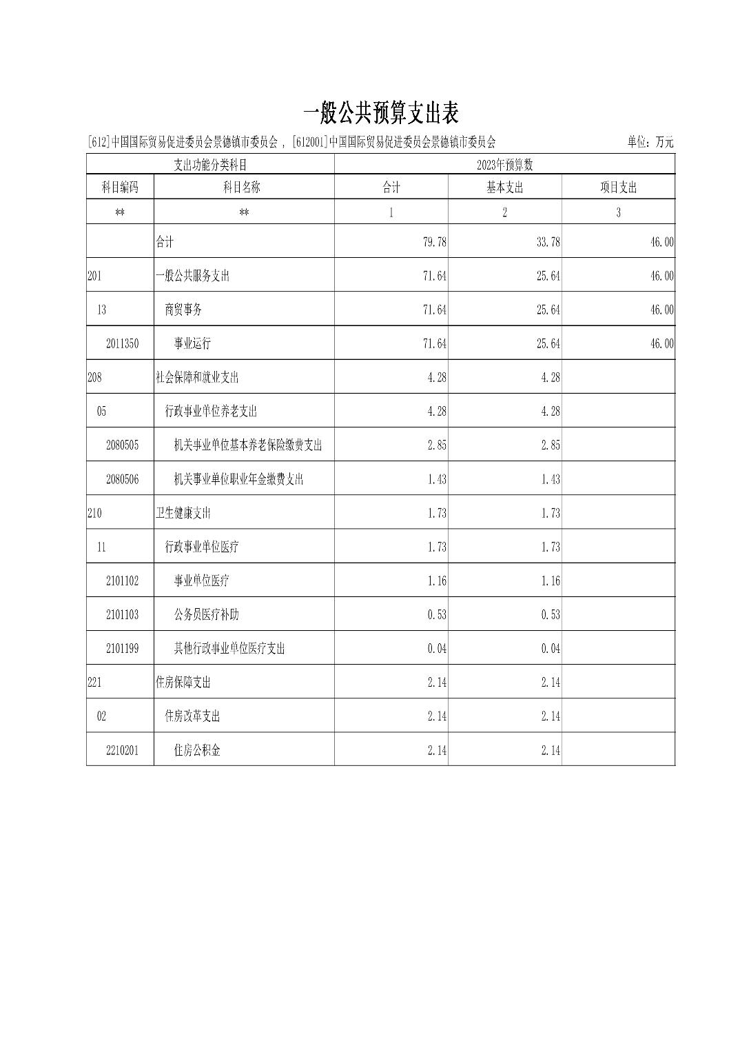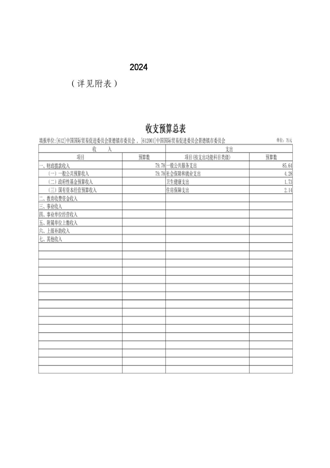 中国国际贸易促进委员会景德镇市委员会2024年部门预算