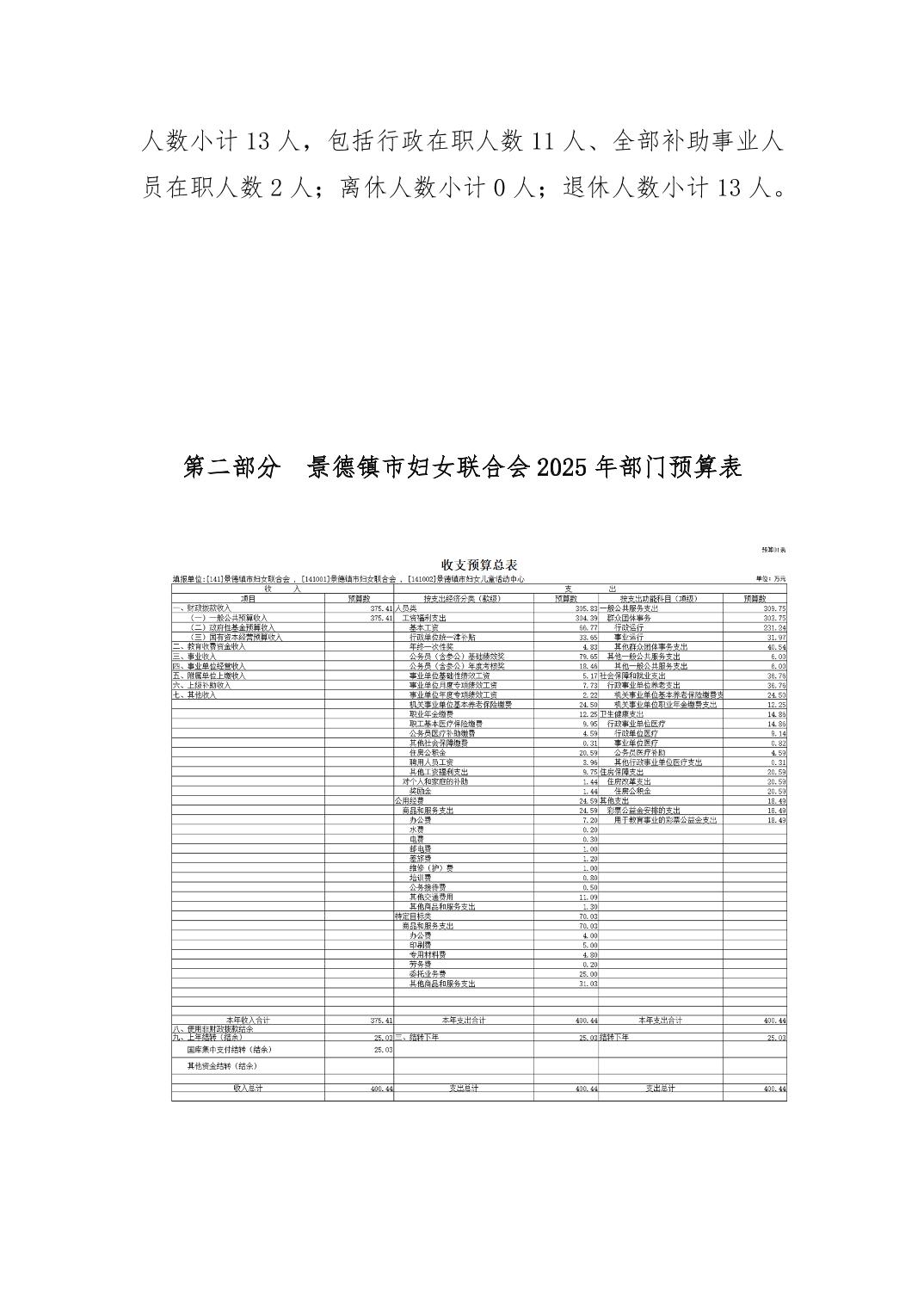 景德镇市妇女联合会2025年部门预算